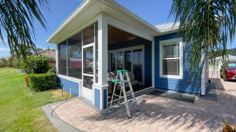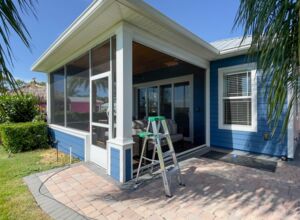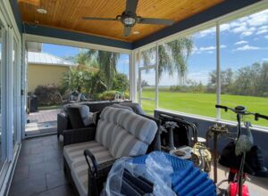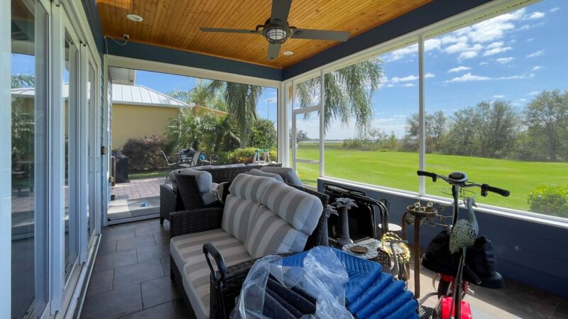 - Fully screened lakeside sitting porch, knee walls on 2 sides, 3rd wall is electric retracting screen wall