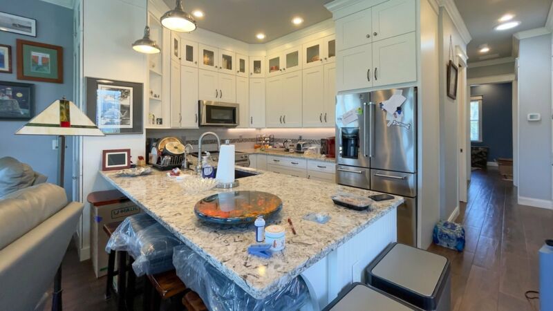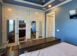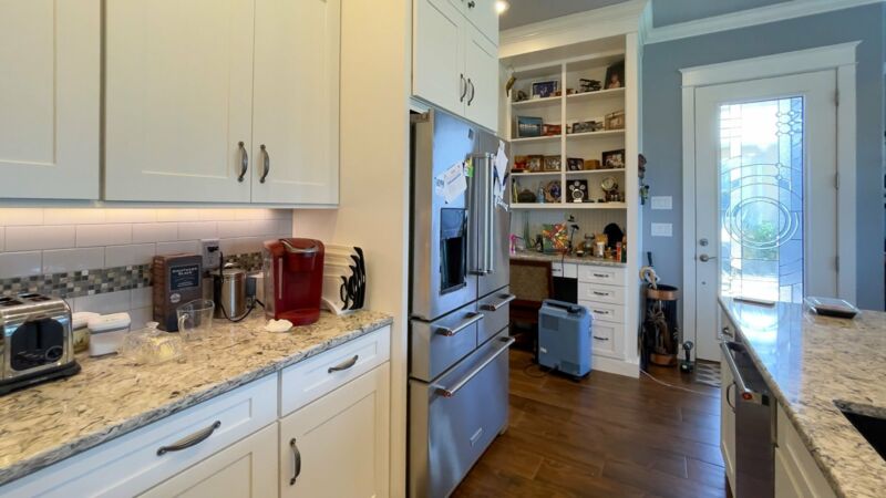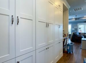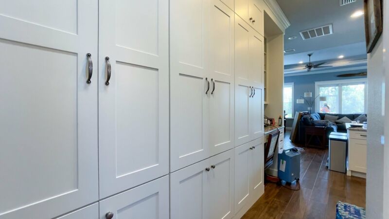 - Custom floor to ceiling cabinetry throughout home, extensive storage including “wall of cabinets”, lower sliders in pantry and kitchen cabinets. All cabinets equipped with “soft-close” hardware on drawers and doors