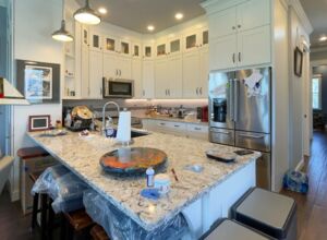- All counter tops are custom “Blanco”, heavy grade quartz (1-1/4” thick) composite undermount kitchen sink