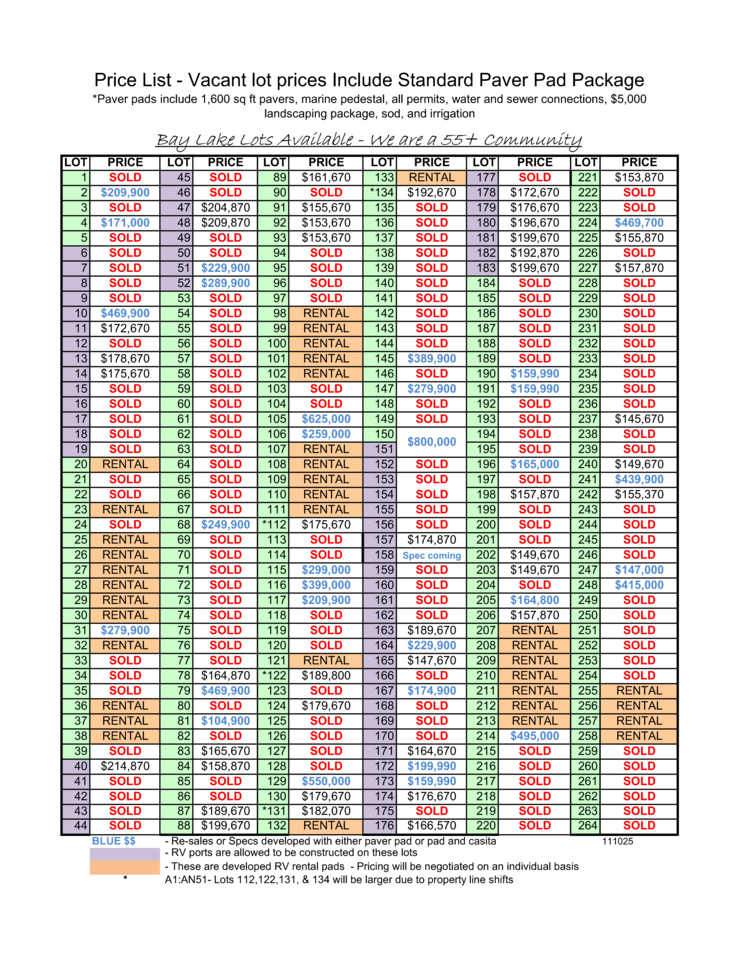 We have many amazing lots to choose from. Below is the Community Map and Corresponding Price sheet. See our price list below to identify our resales.